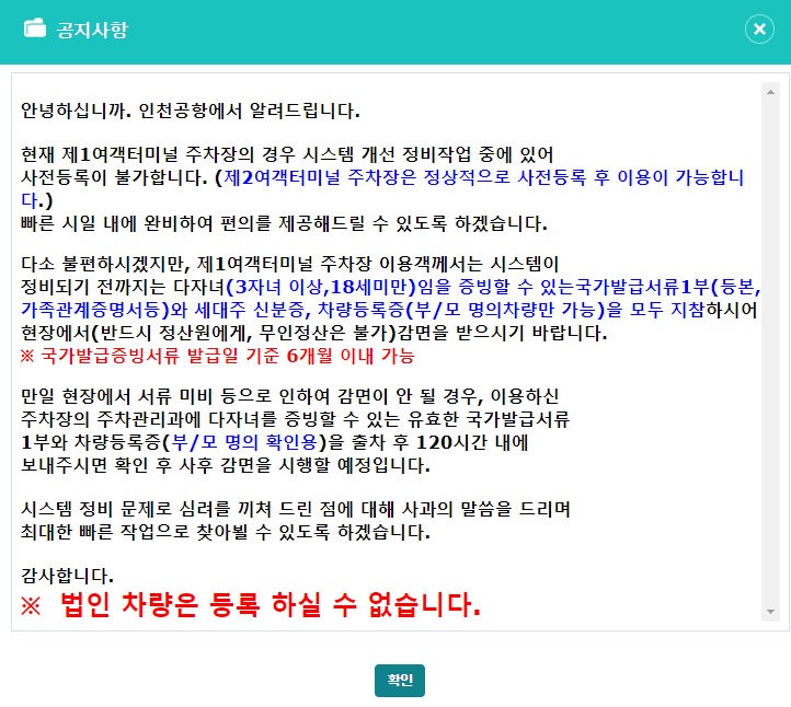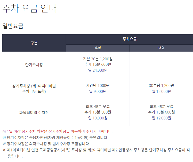 주차비가 얼마나 되는지 확인하려고 인천공항 사이트에 들어가 보니