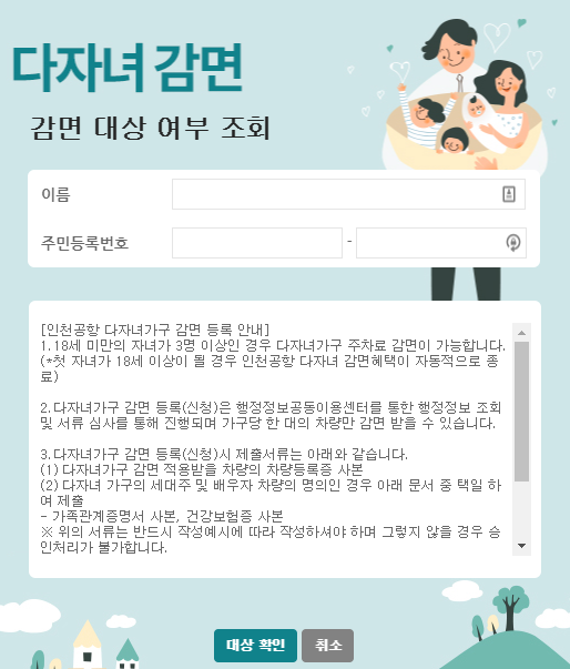 이 정도면 주차할 만하다 생각하고 장기주차 다자녀 감면을 신청해 보았다.