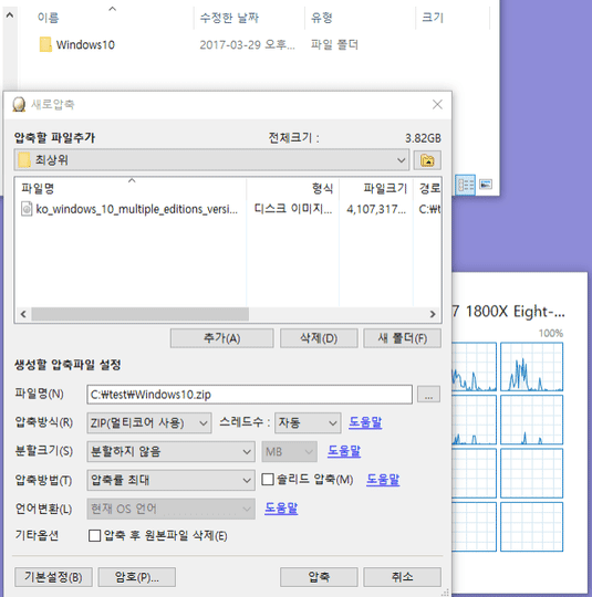 특히 요즘처럼 코어가 많은 CPU를 쓸 때는 다중 코어를 잘 활용하는 반디집이 훨씬 좋습니다.