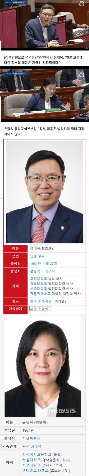 남편은 자한당 국회의원으로써 공격하고, 아내는 문재인 정부 관료로써 방어하고...