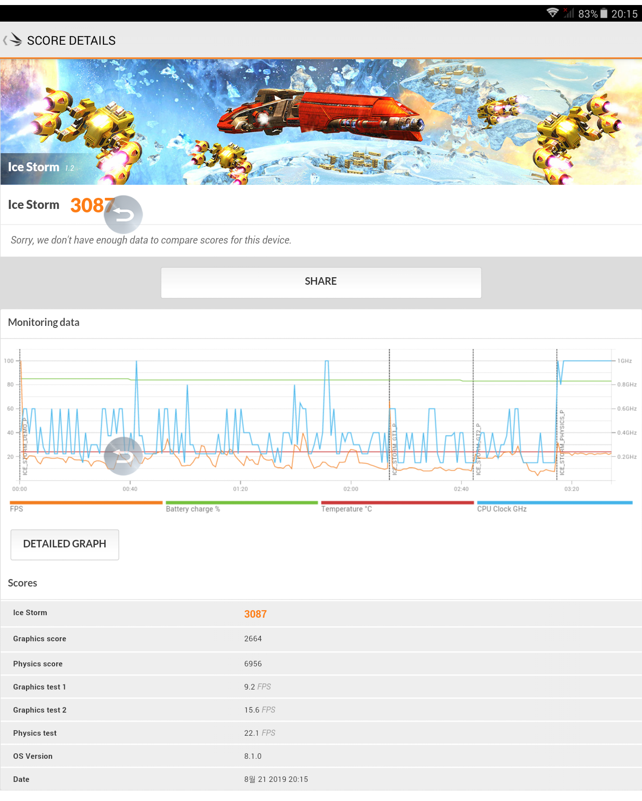 이 속도가 얼마나 저성능인지는 모르겠지만, 8만원대 태블릿에서 기대할 수 있는 성능이리라.