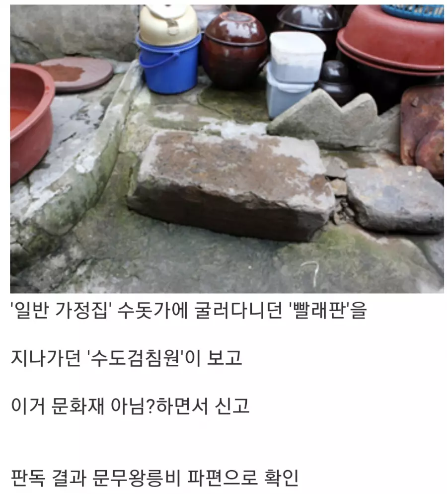 며칠 전 ‘빨래판으로 써온 신라 문무왕릉비 윗조각 찾아’란 기사를 썼다(본지 9월 4일자 2면). 200여 년 전 발견했으나 행방이 다시 묘연해진 비석 윗쪽 부분을 경주시 동부동 주택가 수돗가에서 찾았다는 내용이었다.그런데 7일 전화 한통이 걸려왔다. 문무왕릉비가 재발견된 집주인 송원수(44)씨였다. “2살 때 이