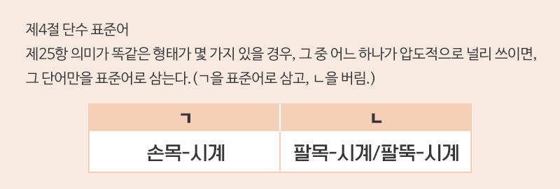 한편 단수 표준어 규정 중 팔목시계와 손목시계 이외에 ‘팔뚝시계’가 존재했다는 점도 재미있다.