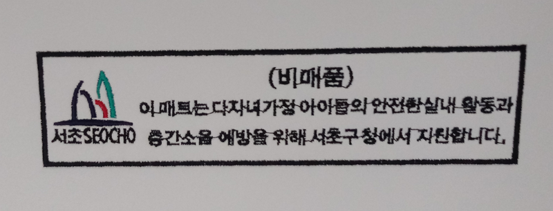 서초구에 거주하는 다자녀 가정에 무료로 매트(두께 5cm 상당)를 지원하는 사업을 하고 있다.
