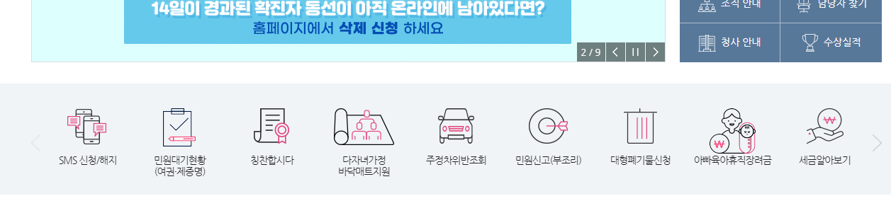 서초구청 홈페이지 첫 화면에서(코로나 화면 닫고) "다자녀가정 바닥매트 지원"을 찾으면 된다.