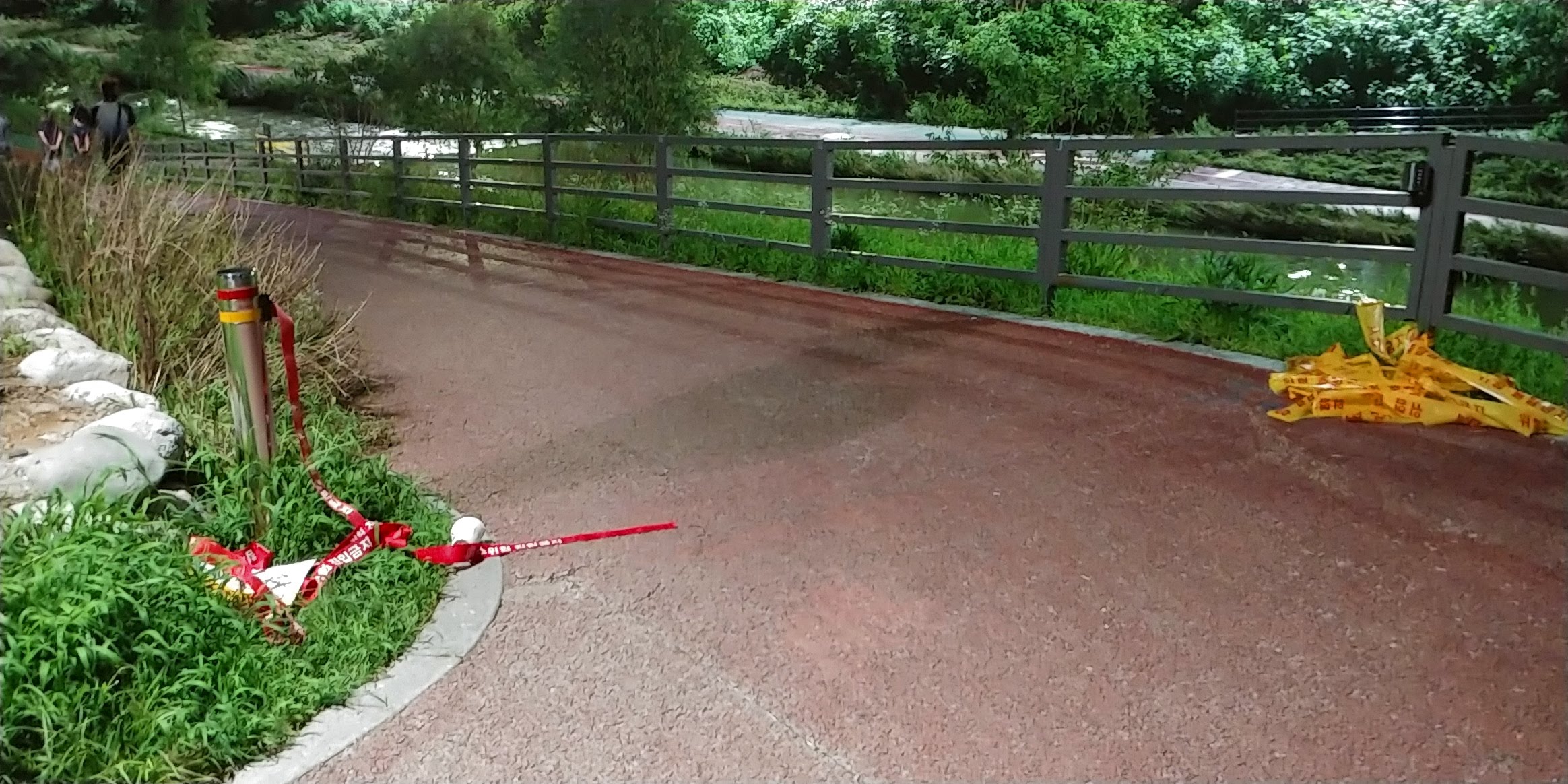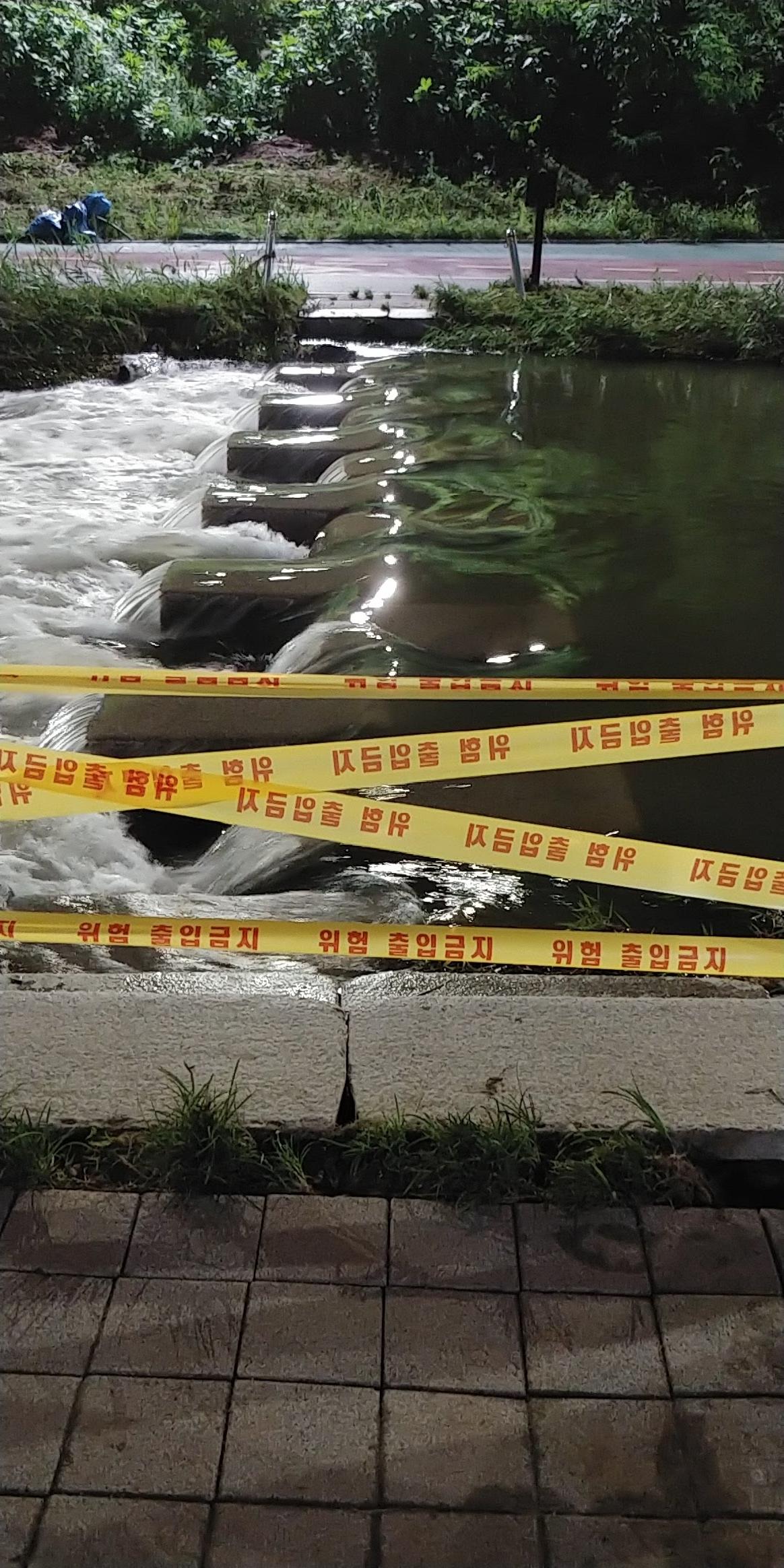 지금은 징검다리 위로 물이 흐르고 출입금지 표시가 앞을 막고 있다.