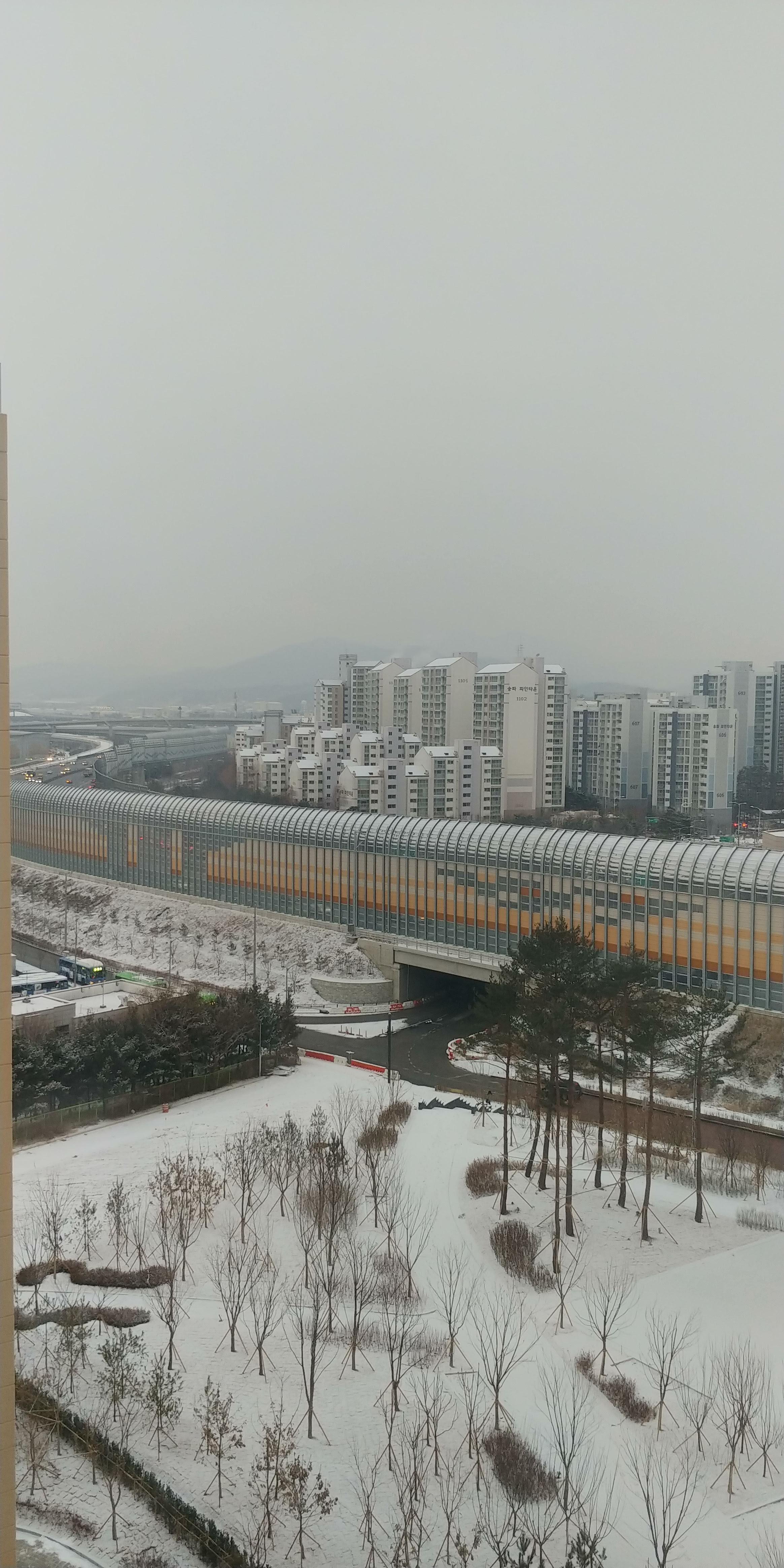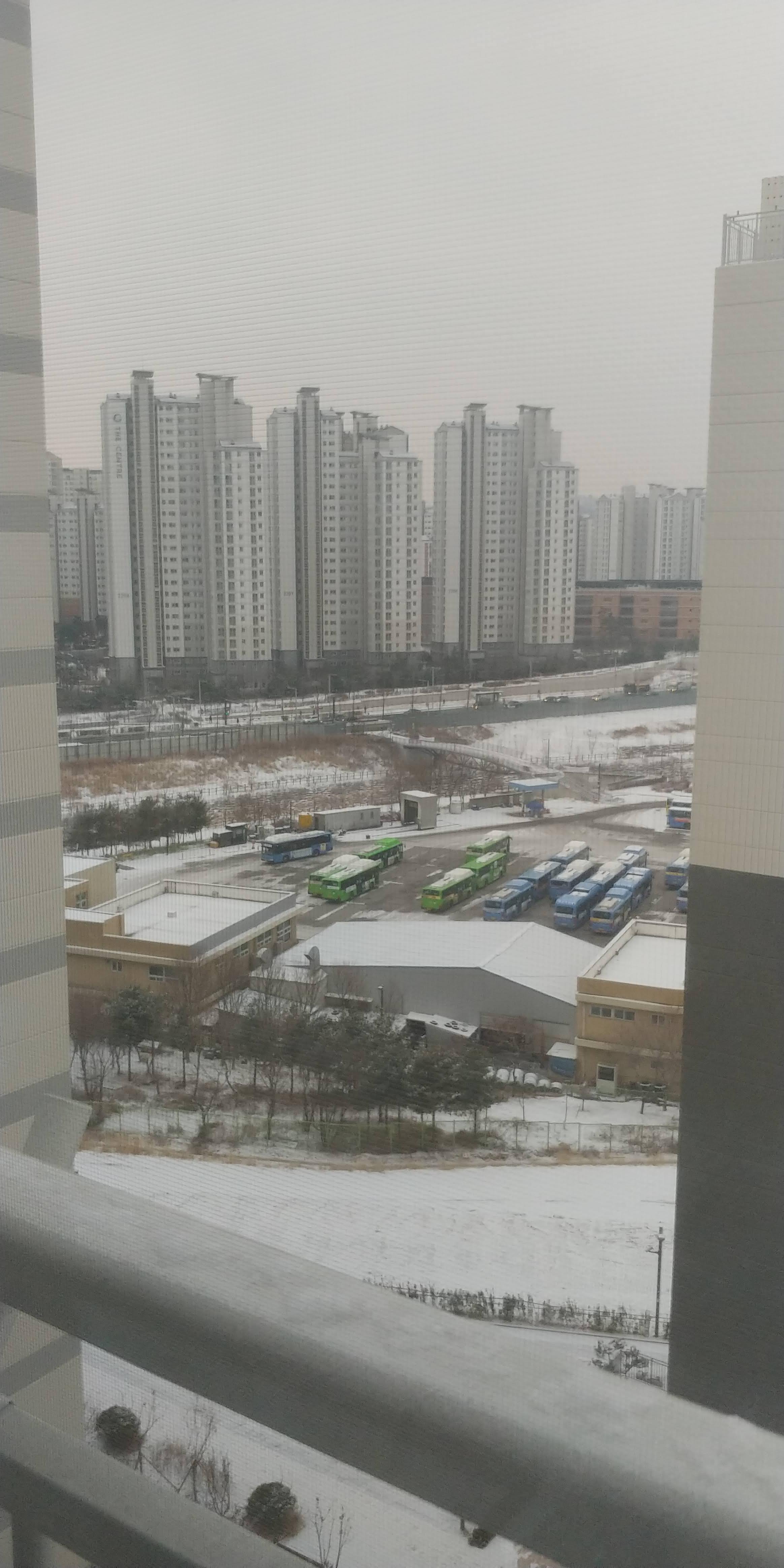 일요일(17일) 아침에 일어나서 창밖을 찍었는데, 월요일(18일) 아침에 일어나 보니 눈이 많이 와서 비교 사진으로 쓰면 좋을 것 같다.