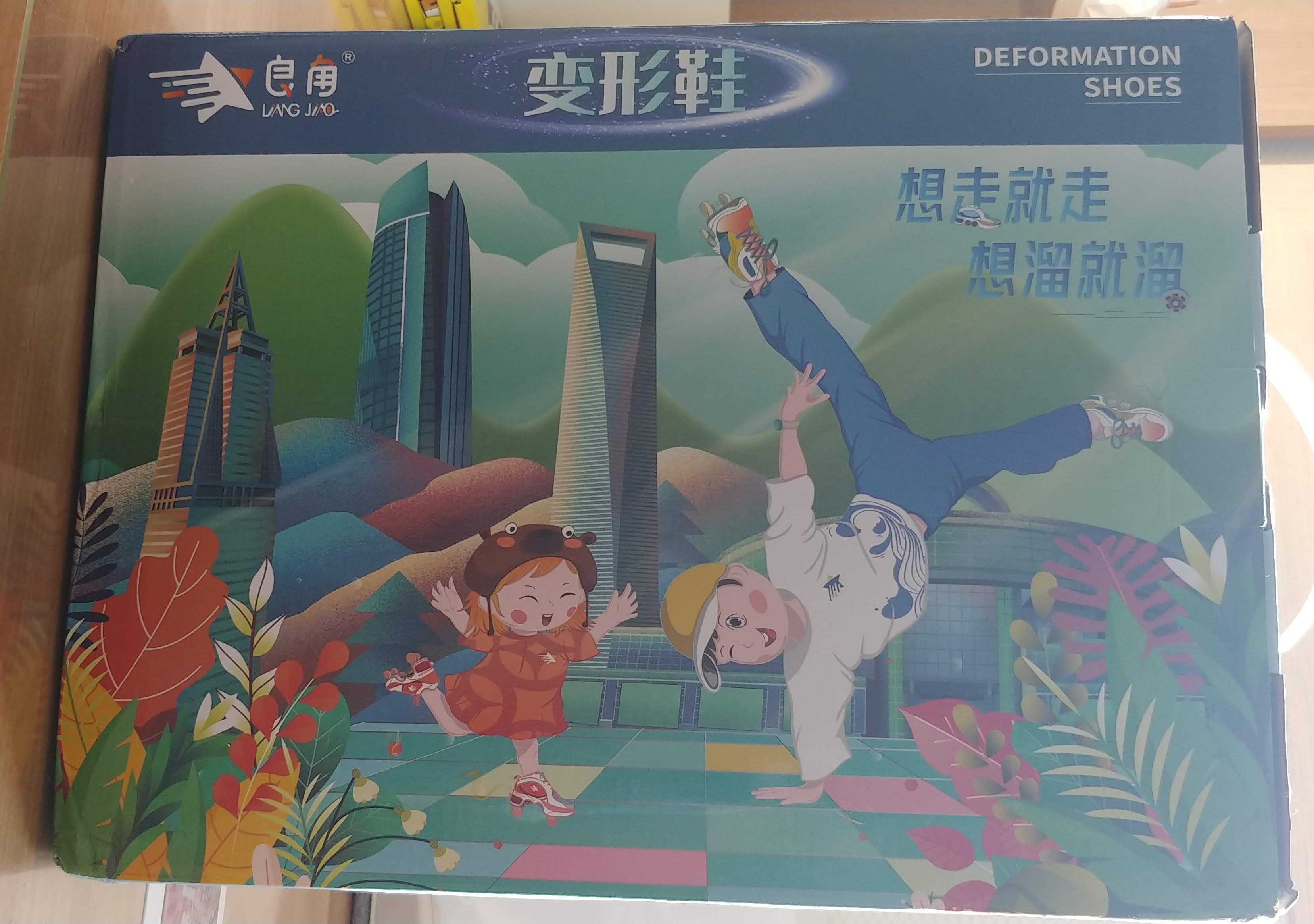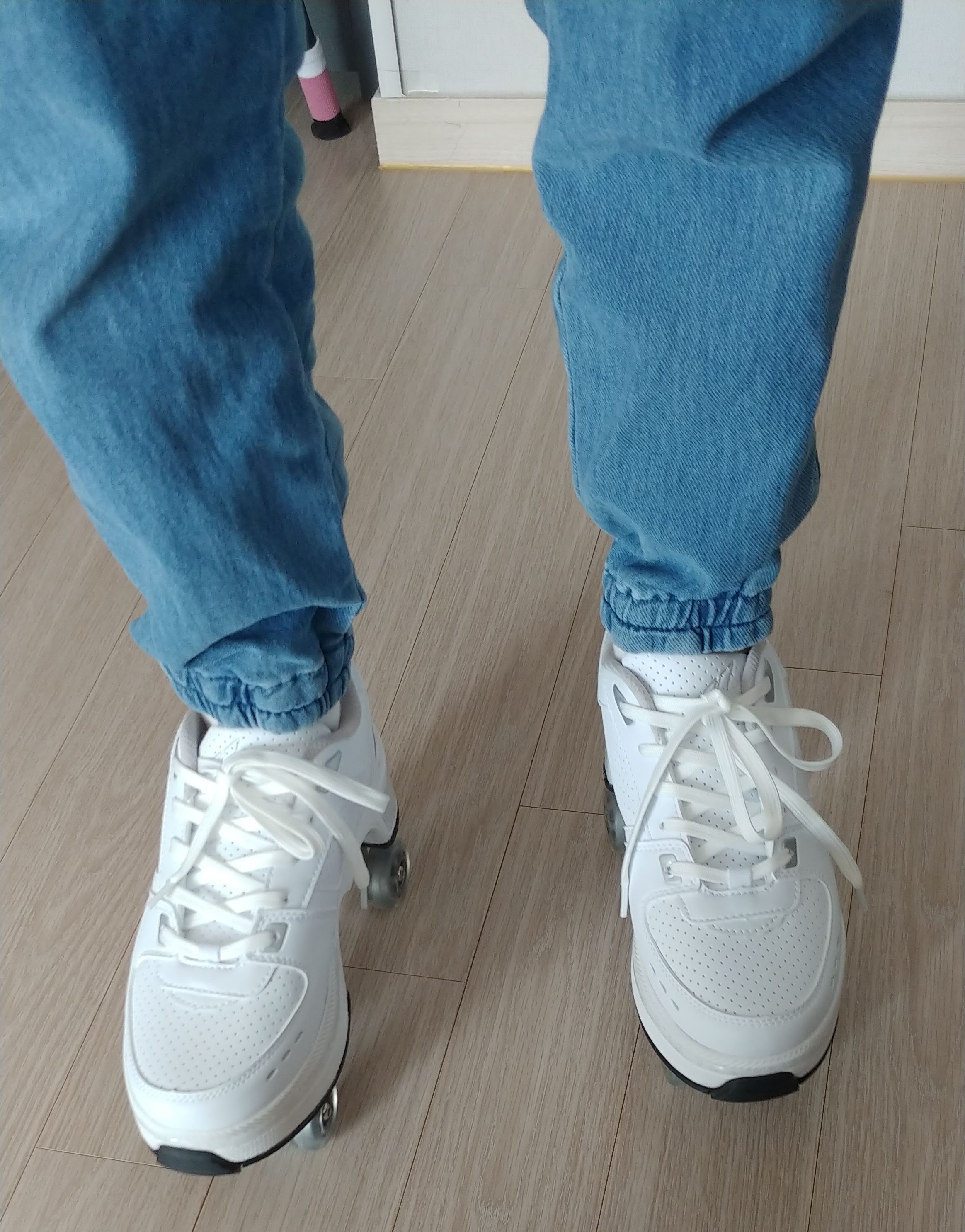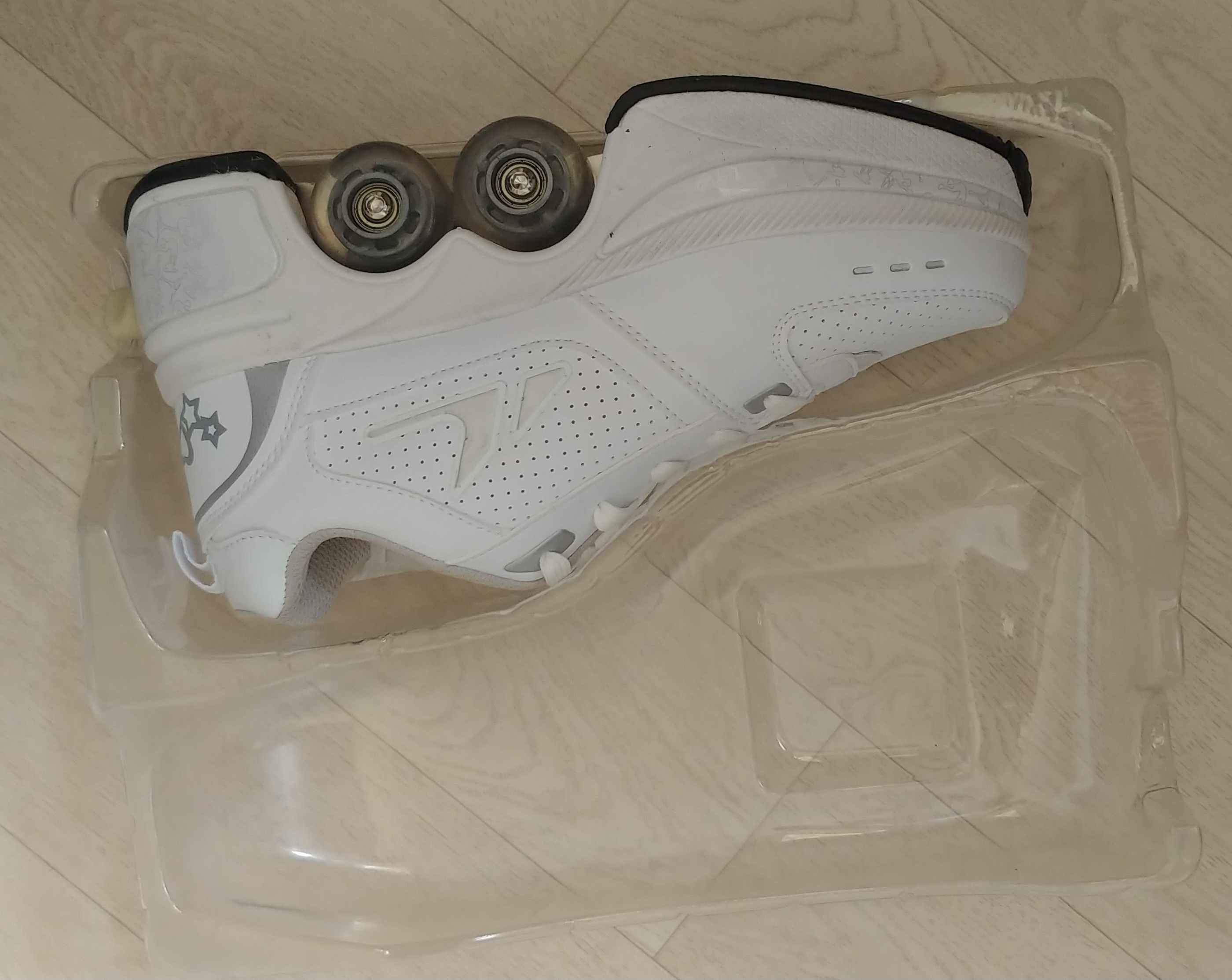 8만8천원 정도 하는 변신화라는 신발인데, 신발 가운데에 바퀴가 있다가 뒷꿈치 단추를 누르면 롤러 스케이트로 바뀌는 신발이다.