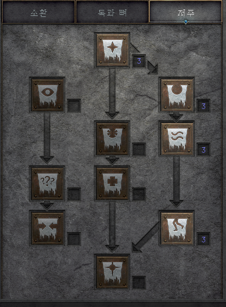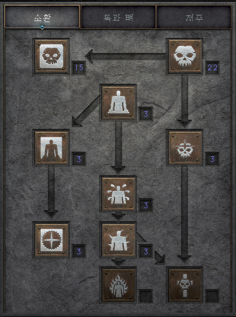 지금은 악몽에서 케인 구해 온 상황이고, 속성/기술 초기화 한 번 해서 반사 저주는 안 배운 상태다.
