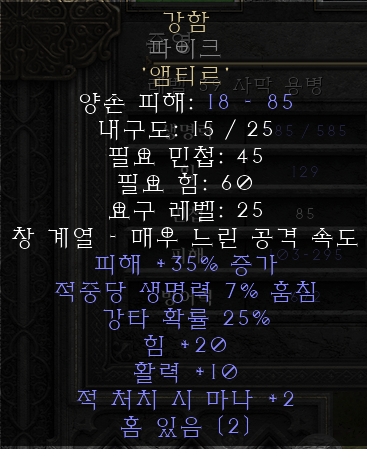 용병은 적생 5% 갑옷을 주워서 입히고, 강함 룬워드 파이크를 들려서 피를 잘 빨게 만들었다.