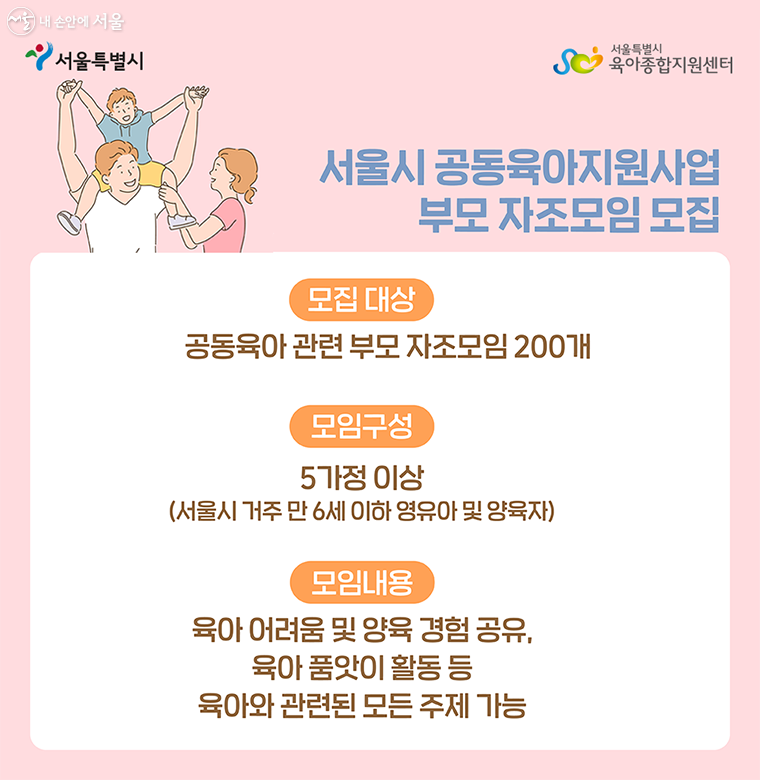 서울시는 공동육아와 관련한 부모 자조모임을 지원한다