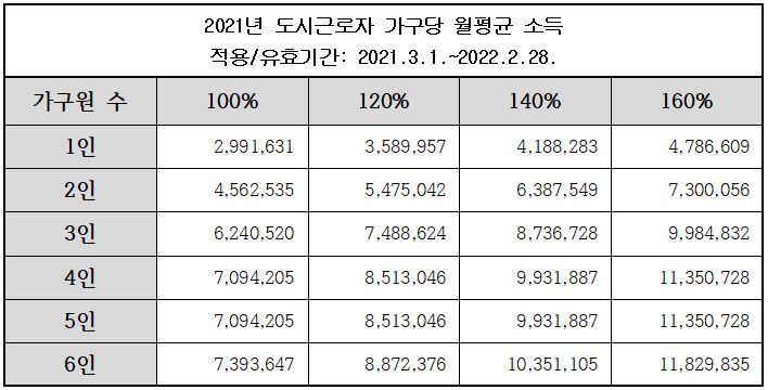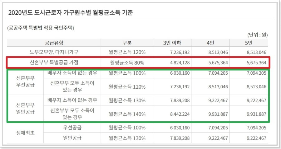 어느 시기에는 5인 소득이 4인 소득보다 낮을 때가 있는데, 이럴 때 청약 기준소득을 4인 소득과 5인 소득이 동일하도록 적용한다.