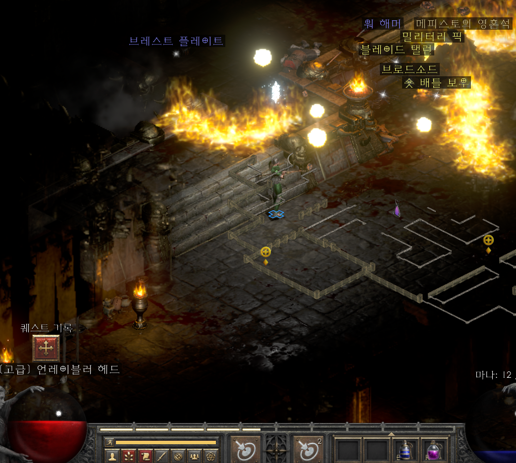 [메피스토] 잡을 때는 용병이 금방 죽어서 아마 혼자 잡았는데, 별달리 속성 저항을 올리지도 않았는데 쉽게 잡았습니다.
