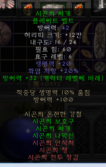 시곤 방패를 찰 수 있게 되어서 클리글로 장비 대신 시곤 장비로 변경하였다.