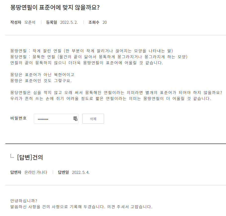 먼저 몽당연필이 표준어임을 밝히고 시작하려 한다. 몽당연필이 짜리몽땅해서 몽땅연필인 줄 알았는데 몽당연필이라는 말을 듣고 어원을 찾아 보았다. 검색을 해 보니, 이미 누군가가 국어원에