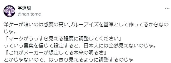 서양 게임이 어두운 것도 감도가 높은 블루아이즈를 기준으로 만들어서 그런 것.