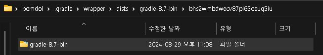 5. 사용자폴더\.gradle\wrapper\dists\그래들버전\고유값\ 폴더(C:\Users\bomdol\.gradle\wrapper\dists\gradle-8.7-bin\bhs2wmbdwecv87pi65oeuq5iu)에 복사한다.